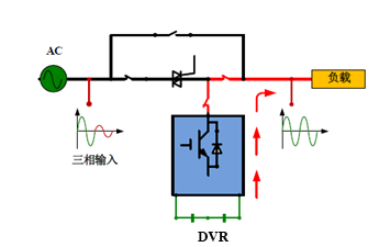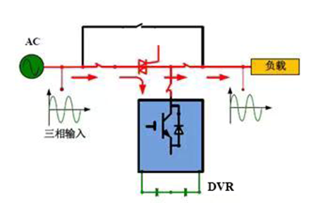 当电网出现扰动瞬间,反并联晶闸管快速关断,负载与电网隔离,由逆变器向负载供电